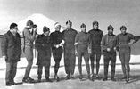 Делегация советских конькобежцев на чемпионате мира в Японии. Слева направо: переводчик делегации, В. Косичкин, врач команды С. Мышалов, И. Воронина (Артамонова), тренер К. Кудрявцев, В. Гуров, Э. Матусевич, тренер Ю. Ивашкин, Е. Гришин. 1963 год