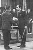 Проводы на тренерскую работу. Начальник ЦСКА полковник Н.П. Шитов вручает Евгению Гришину охотничье ружьё – подарок министра обороны СССР маршала А.А. Гречко. 1968 год