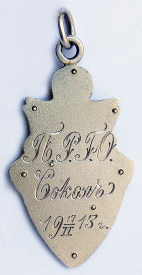 Жетон «I приз, дамы, Первое Русское гимнастическое общество «Сокол», 17.02.1913 г.»