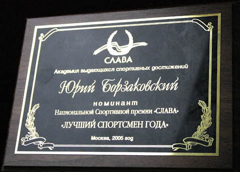 По итогам 2004 года Юрий Борзаковский стал лауреатом Национальной спортивной премии «Слава» в номинации «Лучший спортсмен года»
