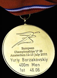 Золотая медаль чемпионата Европы среди молодежи 2001 года в Амстердаме. Юрий попробовал свои силы и на 400-метровке. Получилось успешно