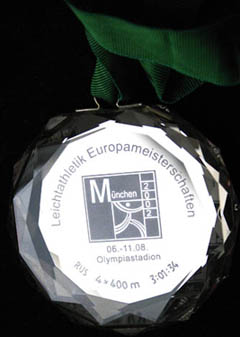 Медаль победителя чемпионата Европы среди юниоров 1999 года в Риге (800 м.)