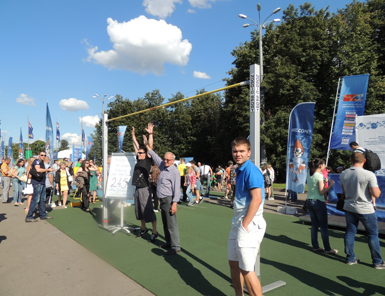 ... или примерить на себя рекорд мира по прыжкам в высоту, установленный в 1993 году кубинским легкоатлетом Хавьером Сотомайором – 2 м 45 см