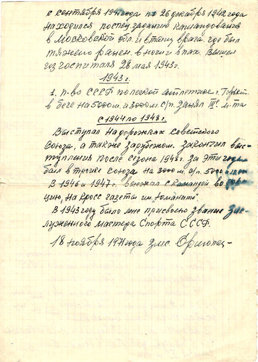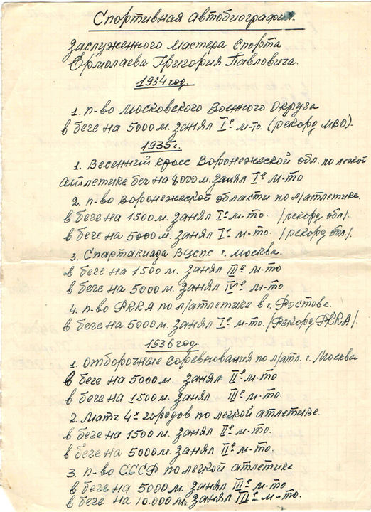 Автограф заслуженного мастера спорта СССР Григория Ермолаева Документы из личного архива Григория Павловича Ермолаева