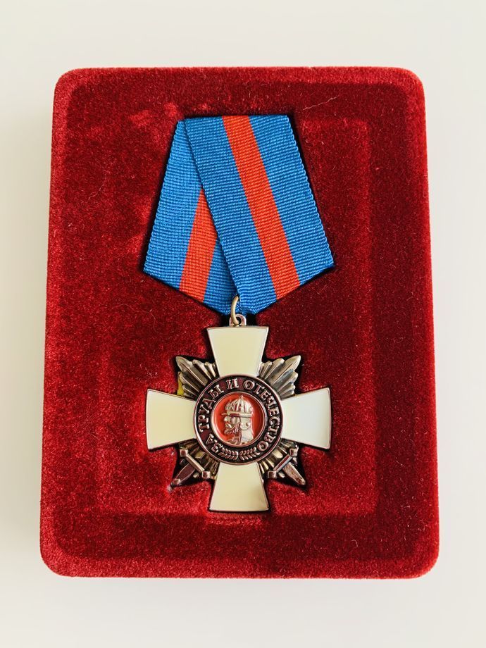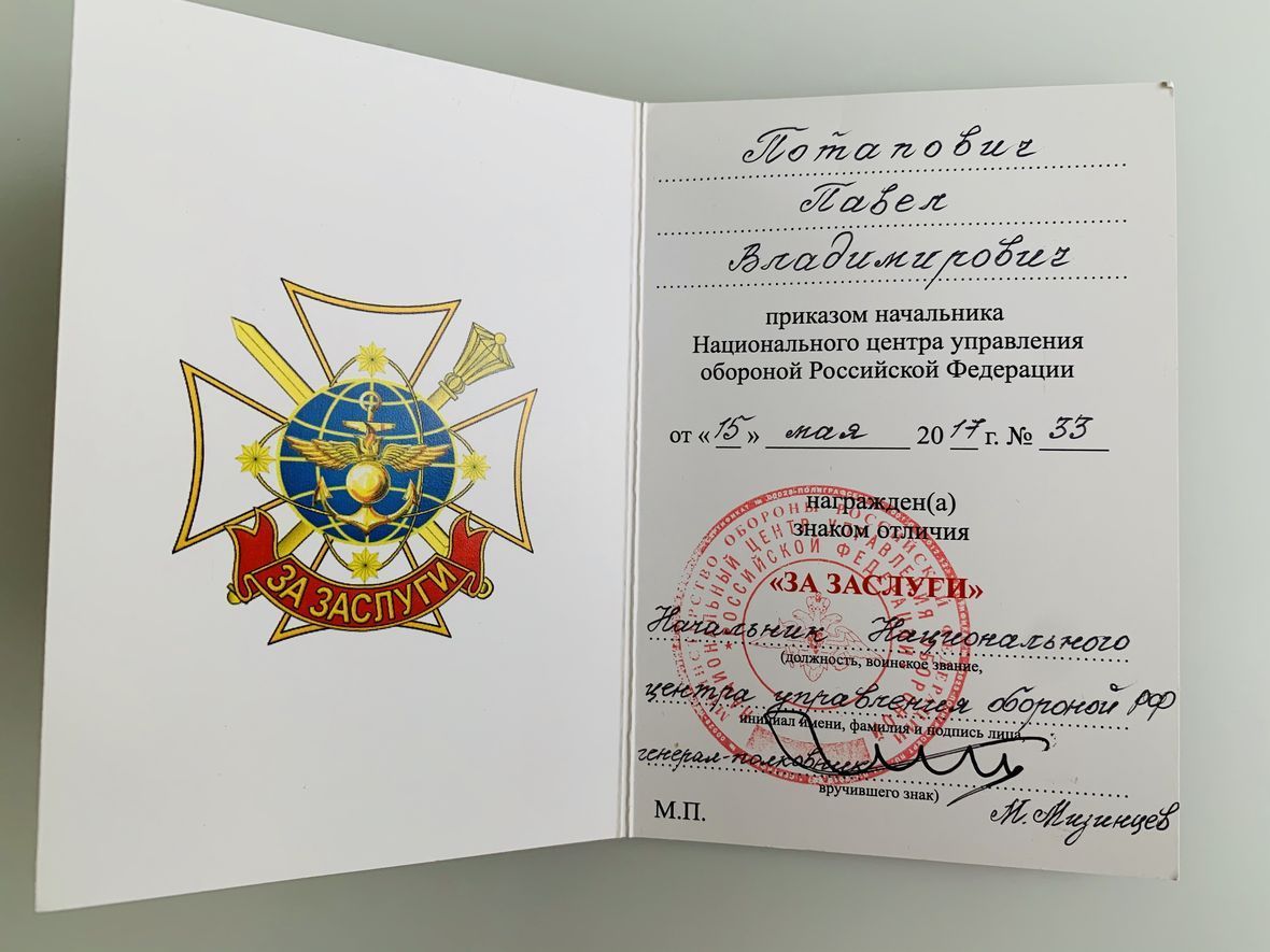 Знак «За заслуги» Министерства обороны России и удостоверение к нему.