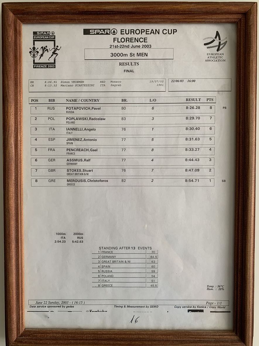 Протокол финала Кубка Европы. Флоренция, 2003 год