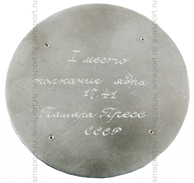 Медаль Тамары Пресс – многократной победительницы Международных соревнований на приз братьев Знаменских в толкании ядра и метании диска. Эта медаль за победу в толкании ядра на соревнованиях 1961 года в Москве