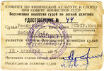 Удостоверение судьи по спорту второй категории Кобзева В.А. (лёгкая атлетика). Московский городской совет Союза спортивных обществ и организаций. 4 июля 1968 года