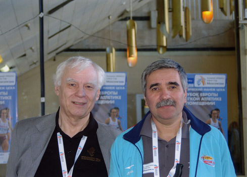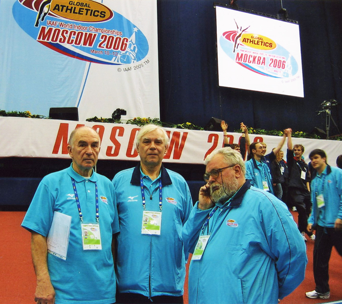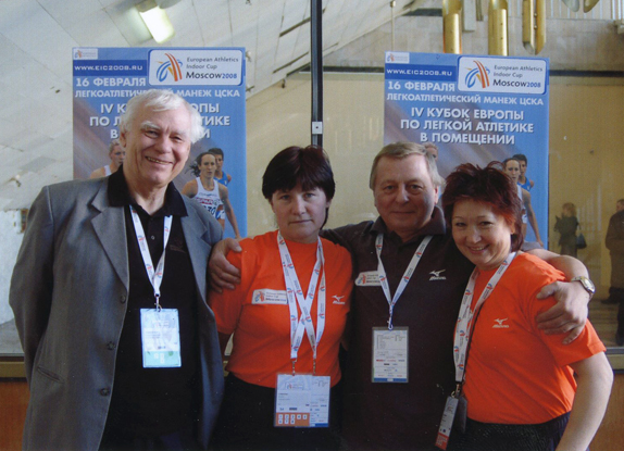 Кубок Европы по лёгкой атлетике. На фото слева: В.А. Кобзев и судья Всесоюзной категории, председатель Президиума Всероссийской коллегии судей Айнетдинов Гайяр Гарифович; на фото справа: члены судейского корпуса соревнований. Москва, Легкоатлетический манеж ЦСКА. 16 февраля 2008 года