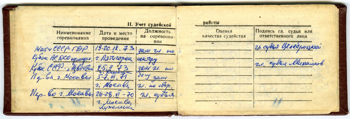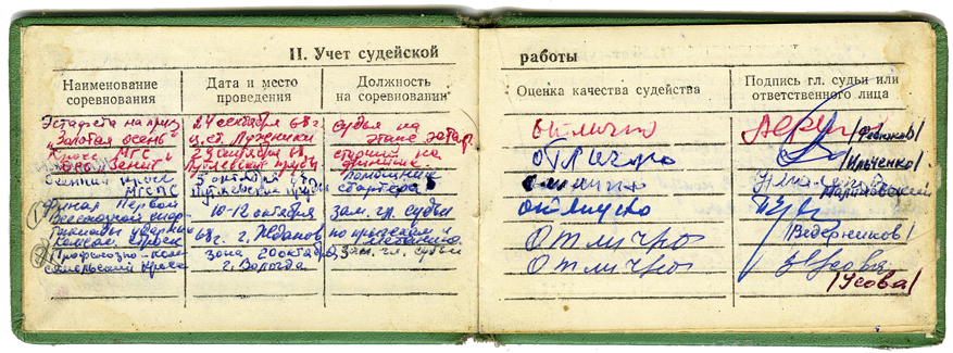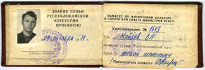 Удостоверение судьи по спорту второй категории Кобзева В.А. (лёгкая атлетика). Московский городской совет Союза спортивных обществ и организаций. 4 июля 1968 года