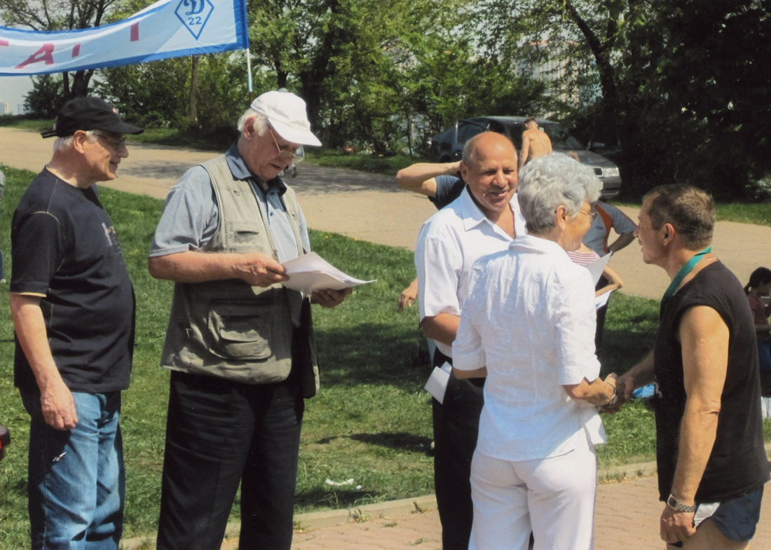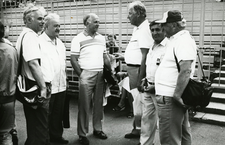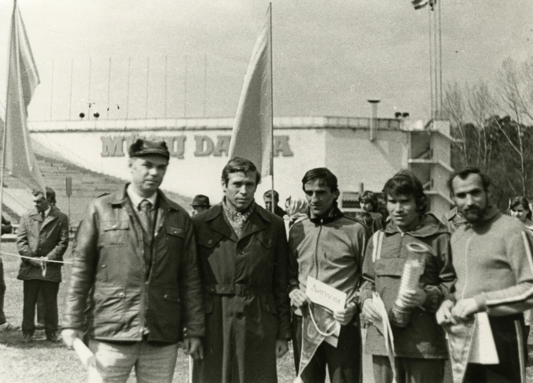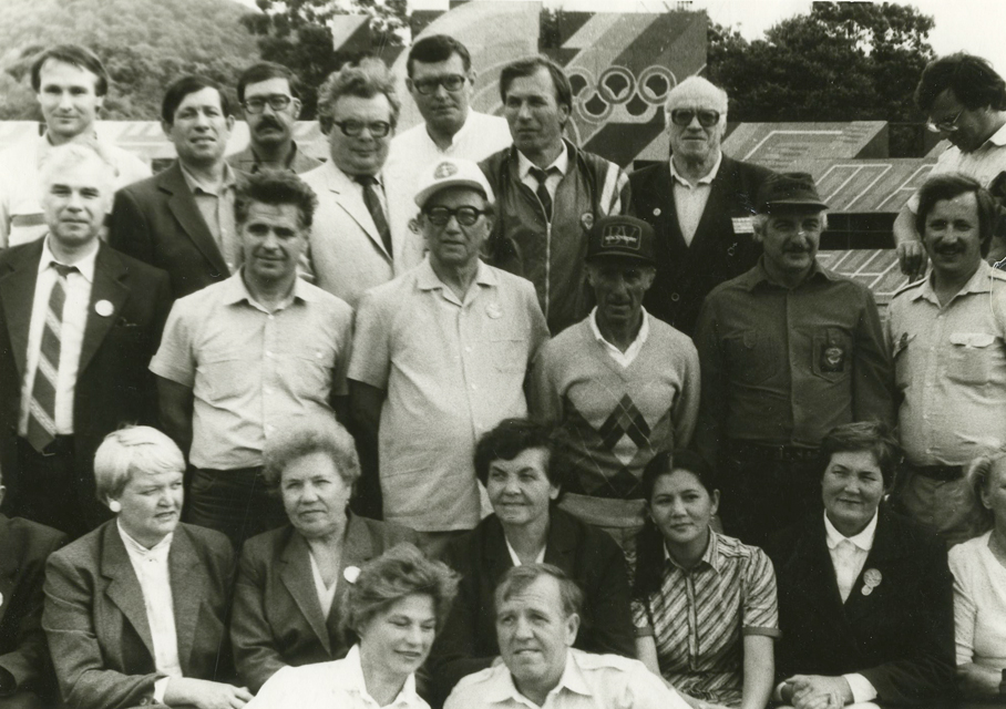 Общество «Урожай». С председателем общества Михаилом Егоровичем Соболевым (второй слева) Первенство Центрального Совета общества по лёгкой атлетике. Город Гродно. (1970-е годы)
