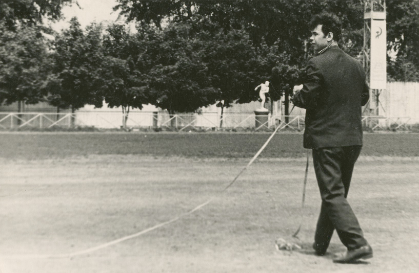 Соревнования «Игры Доброй воли». На переднем плане судья Всесоюзной категории, блокадник Герман Перемышлин. Стадион «Петровский», Ленинград. (1986)
