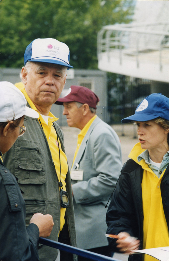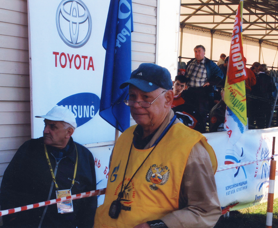 Пробеги в Лужниках. В центре – главный судья соревнований Борис Васильевич Романов. (2001- 2002)