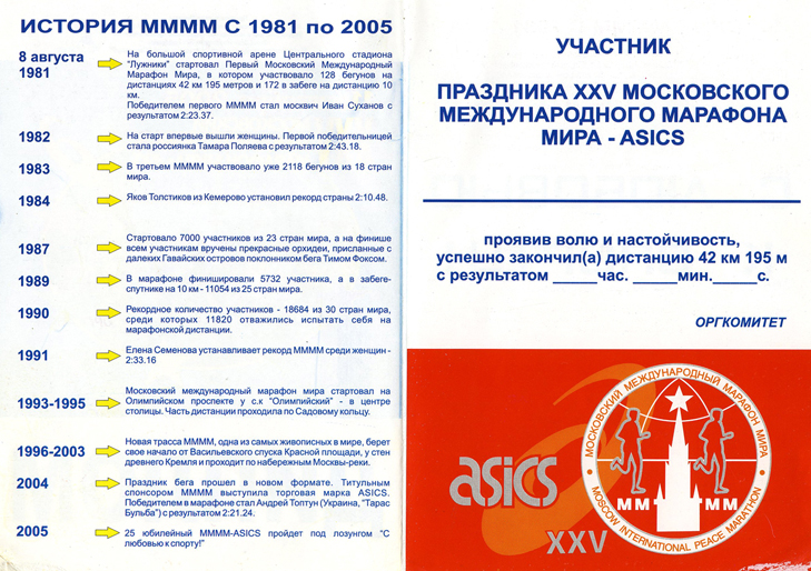 Забеги на разные дистанции в рамках Московского марафона «Лужники». (2000)