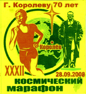 Наклейка соревнований «XXXII Космический марафон», посвящённый 70-летию города Королёва. 28 сентября 2008 года