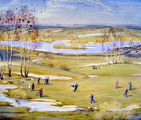 Ну и наконец, при раскопках Великого Новгорода были найдены деревянные биты и войлочные мячи, которые археологи датировали XIV веком.