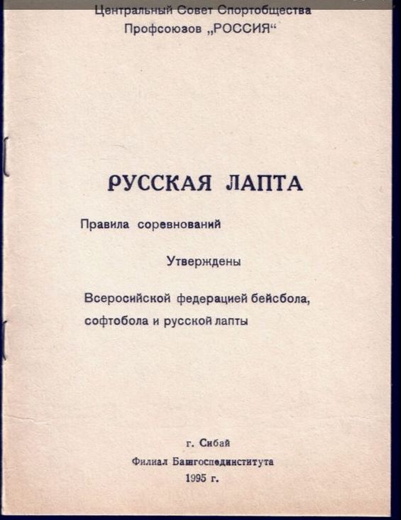 Русская лапта. Правила соревнований ЦСС Профсоюзов «Россия». 1995 г.