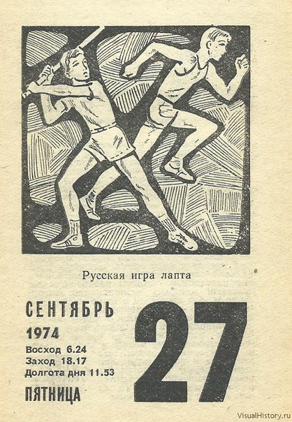 Лист отрывного календаря 1974 г. с изображением русской лапты