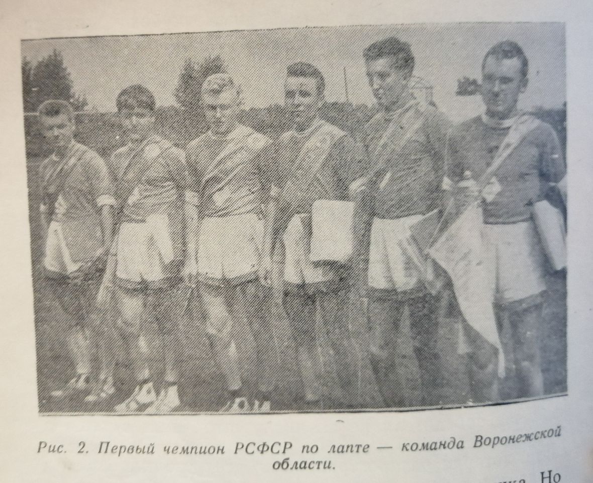 Листая и читая отчёты о первом Первенстве РСФСР по русской лапте, а их было много, как в газетах, так и в спортивных журналах, мы нигде не нашли упоминания о переигровке финальной встречи команд Воронежа и Оренбурга. А нам, воронежцам, - участникам, спортивному руководству и болельщикам - эта игра с Оренбургом потрепала много нервов и запомнилась надолго! Дело в том, что оренбуржцы подали протест - в перерыве между таймами работники стадиона обильно полили игровую площадку! У нас была сменная обувь - кеды на шипах, а игроки команды Оренбурга весь второй тайм скользили на поле и часто падали. Протест был принят, и на следующий день, на утро, назначили переигровку. И на следующий день мы сыграли собранно и без ошибок. Выиграли без труда и стали чуть ли не национальными героями, как в институте, так и в городе. Ростовская телехроника показывала наши игры в «Новостях дня», в газетах и журналах разместили наши фотографии и отчеты о первом первенстве РСФСР по лапте».