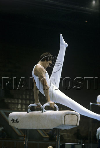 Николай Андрианов Командное первенство, упражнения на кольцах, опорный прыжок