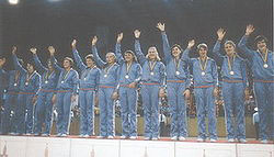 Сборная команда СССР по спортивной гимнастике Слева направо: Елена Давыдова, Мария Филатова, Нелли Ким, Елена Наймушина, Наталья Шапошникова, Стелла Захарова