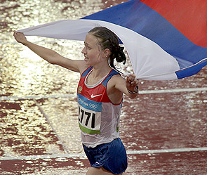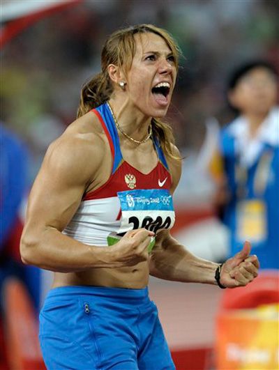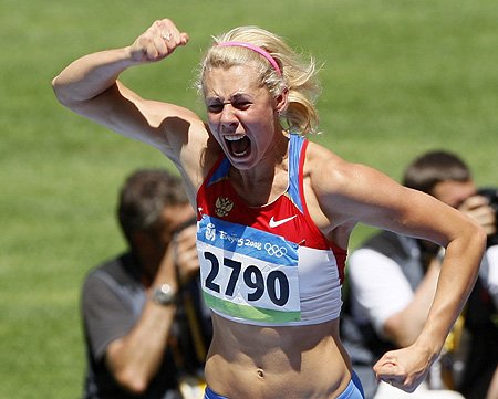 Бег 3000 м с препятствиями Золотая медаль – Гульнара Галкина-Самитова – 8.58,81 (мировой рекорд) Foto: eurosport.ru, topnews.ru, sport-express.ru