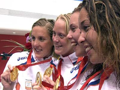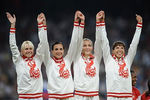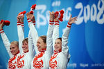 Эстафета 4х100 м Золотые медали – Евгения Полякова, Александра Федорина, Юлия Гущина, Юлия Чермошанская, Наталья Муринович, Наталья Русакова – 42,31 Foto: vremya.ru, zastakanom.ru, olympicpekin.ru