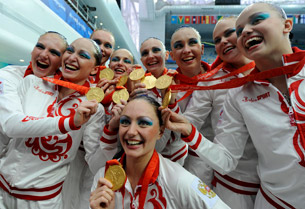 Групповые соревнования Золотые медали – Маргарита Алийчук, Анна Гавриленко, Татьяна Горбунова, Елена Посевина, Дарья Шкурихина, Наталья Зуева Foto: newyork.ru, newsru.na, glavred.ru