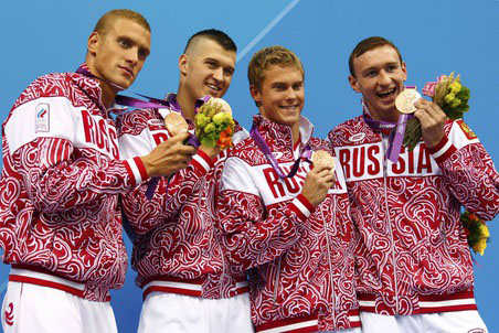Андрей Гречин, Никита Лобинцев, Владимир Морозов, Данила Изотов Эстафета 4х100/вольный стиль (3.11.41) Бронзовая медаль Фото: london2012.com