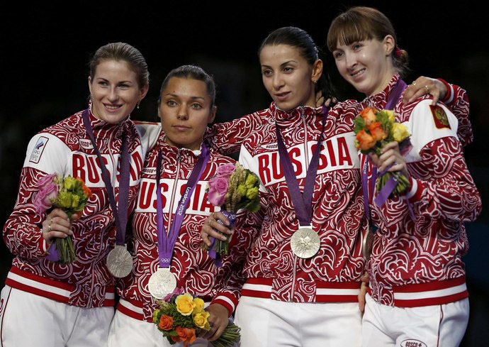 Инна Дериглазова, Аида Шанаева, Лариса Коробейникова, Камила Гафурзянова Рапира, командное первенство Серебряная медаль Фото: reuters.com