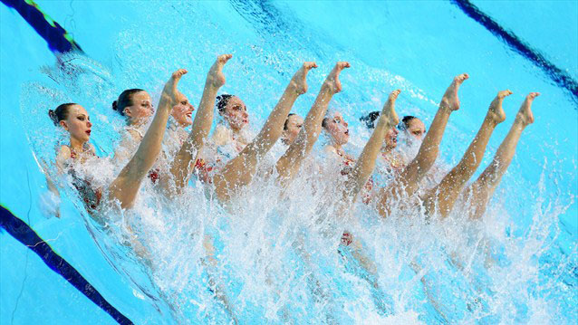 Мария Громова, Анастасия Давыдова, Наталья Ищенко, Дарья Коробова, Александра Пацкевич, Светлана Ромашина, Анжелика Тиманина, Эльвира Хасянова, Алла Шишкина Групповые упражнения (98.930) Золотая медаль Фото: london2012.com