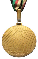 Игры XXV Олимпиады 1992 года в Барселоне (Испания) 25 июля – 9 августа В дизайне лицевой стороны медали использованы несколько изменённые элементы классического стиля: богиня победы с лавровым венком в одной руке и пальмовой ветвью в другой, снизу по кругу – оливковые ветви, сверху справа и в центре – название Игр, город и год проведения, ниже – олимпийские кольца. Оборотная сторона медали содержит эмблему Игр XXV Олимпиады. Позолоченное серебро, серебро, бронза. Диаметр медали 70 мм