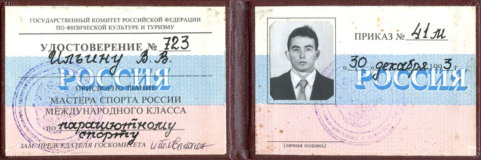 Норматив кандидата в мастера спорта СССР по парашютному спорту Владимир Ильин выполнил в 1989 году