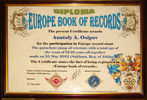 Сертификат Европейской книги рекордов, удостоверяющий участие Анатолия Осипова в установлении рекорда Европы в групповом прыжке ветеранов парашютизма. В составе группы насчитывалось 20 парашютистов-ветеранов. Общий возраст участников составил 1246 лет. Рекорд установлен в городе Сухуми, Республика Абхазия, 25 мая 2012 года