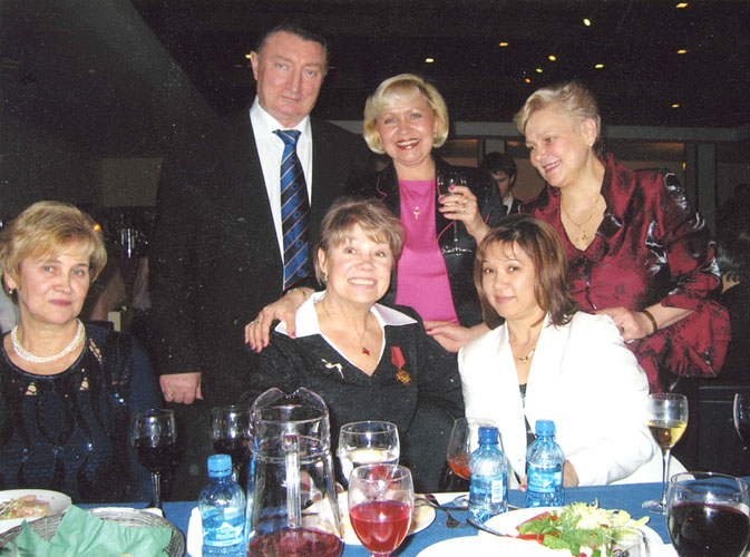 На юбилее Ларисы Семеновны Латыниной с Тамарой Люхиной-Замотайловой, Нелли Ким и супругом юбилярши. 2004 год