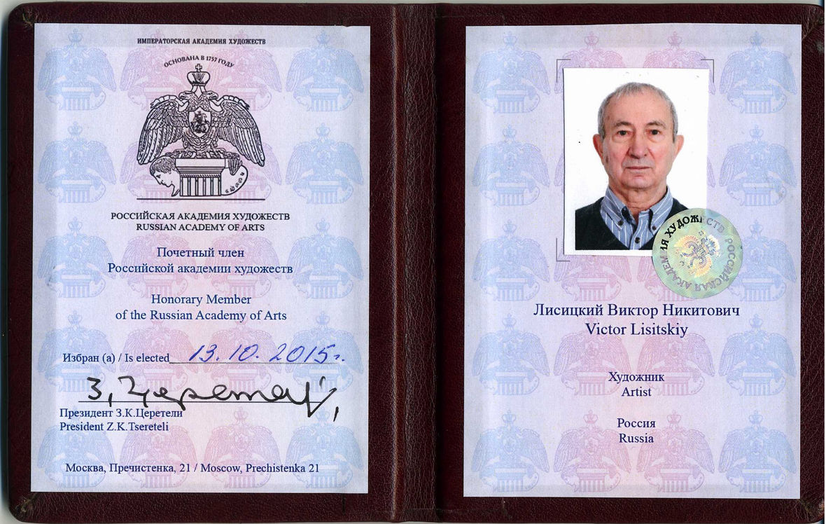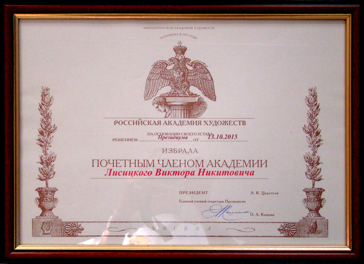 13 октября 2015 года Виктор Никитович Лисицкий избран Почётным членом Российской академии художеств