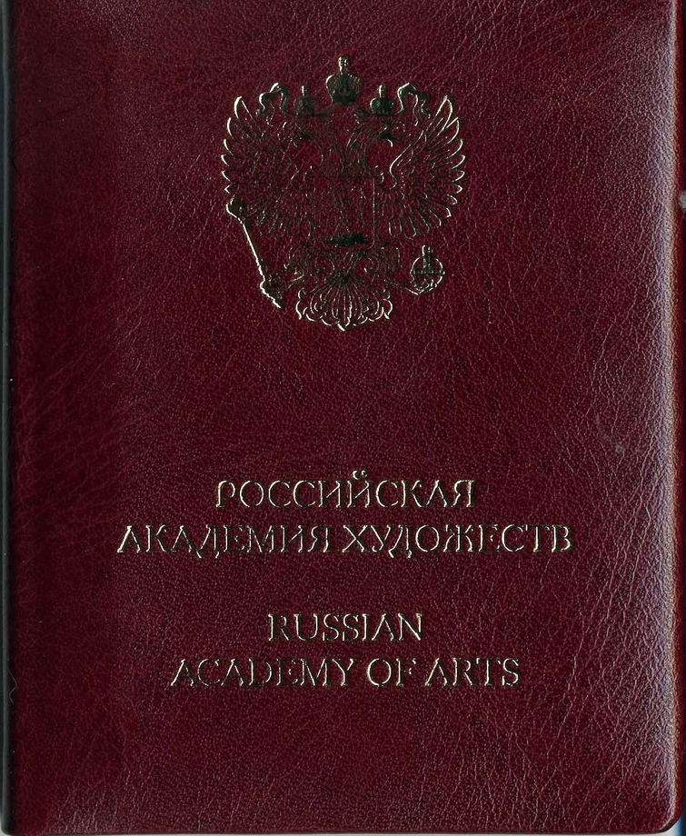 Диплом, удостоверение и памятная медаль Почётного члена Российской академии художеств от 13 октября 2015 года