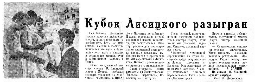 Игры Олимпиады 1964 года в Токио. Виктор Лисицкий стал серебряным призёром в абсолютном и командном первенствах, вольных упражнениях и опорном прыжке