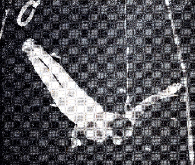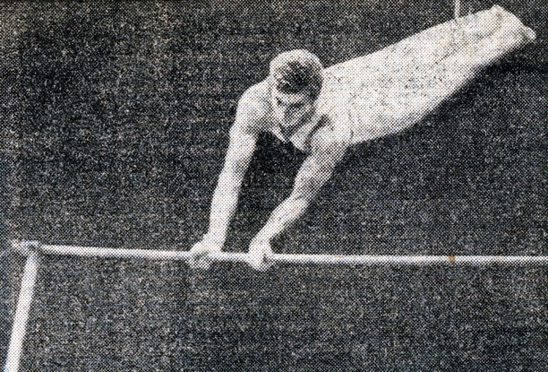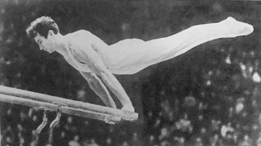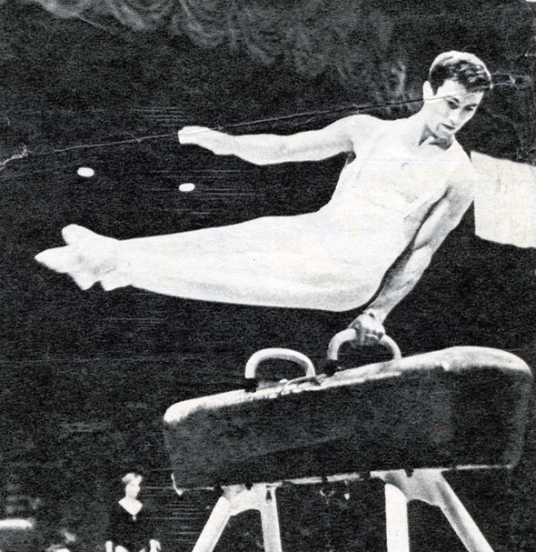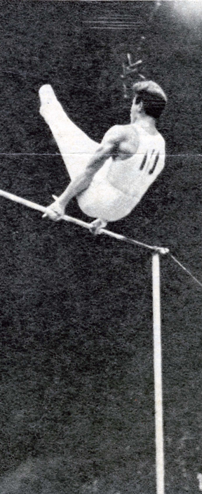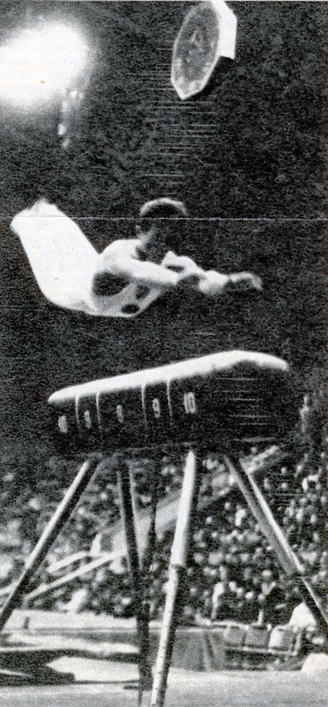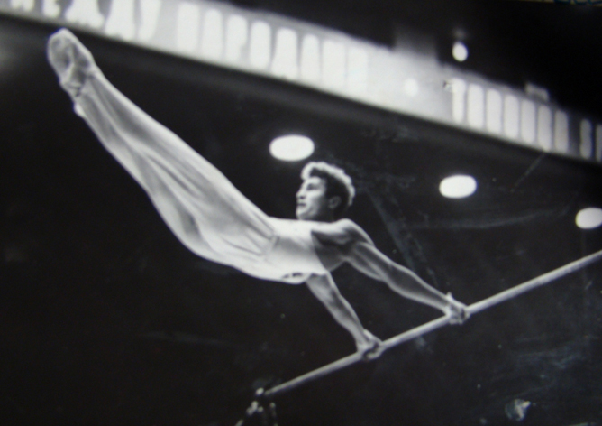 Чемпионат мира 1962 года в Праге. Упражнение на перекладине выполняет Виктор Лисицкий