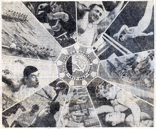 Плакат Спартакиады народов РСФСР 1967 года. Спортивную гимнастику представляет Виктор Лисицкий (в верхнем правом углу)