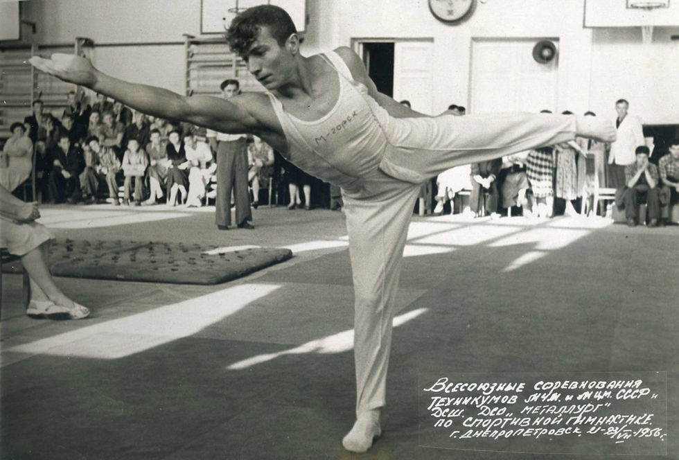 Начало спортивной карьеры. 17-летний Виктор Лисицкий – победитель Всесоюзных соревнований техникумов по спортивной гимнастике. Выступал за ДСШ ДСО «Металлург». Город Днепропетровск, 1956 год