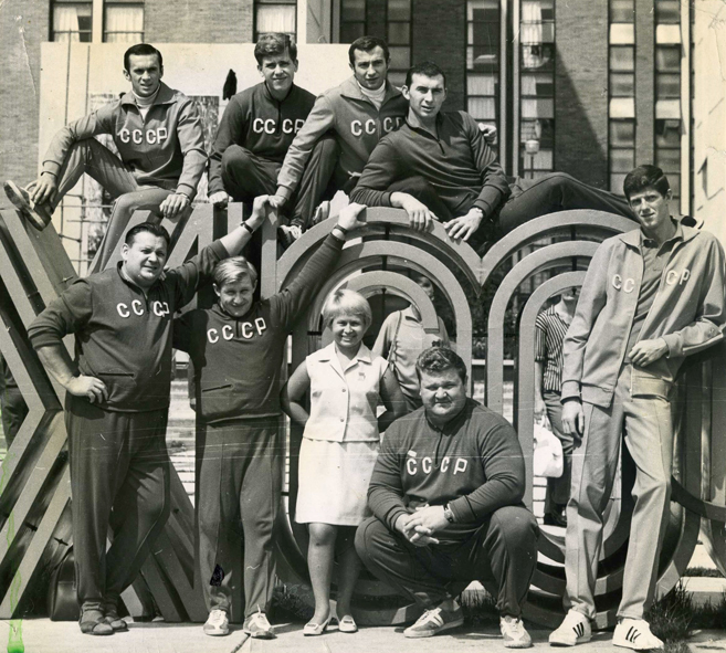 Советская олимпийская сборная с композитором Александрой Пахмутовой. Виктор Лисицкий – второй справа в верхнем ряду
