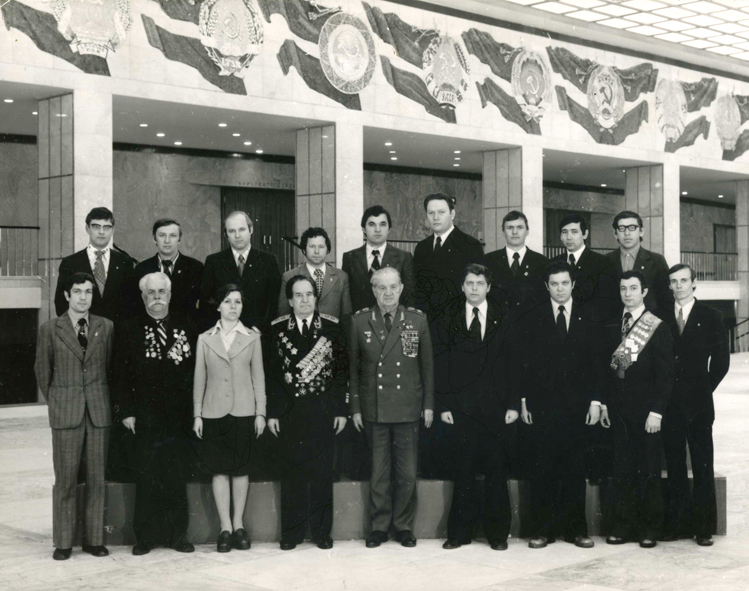 Съезд ЦК ВЛКСМ, Кремлёвский Дворец Съездов. В центре – маршал Советского Союза Василий Иванович Чуйков. Виктор Лисицкий – второй справа в нижнем ряду