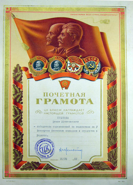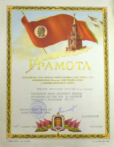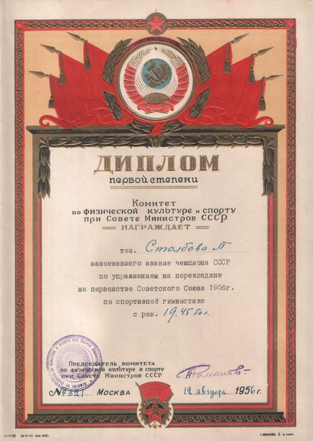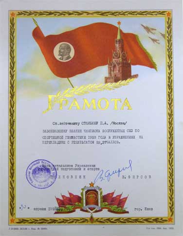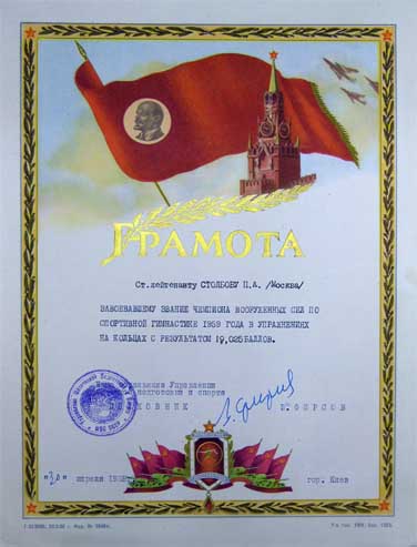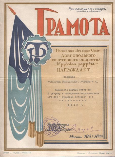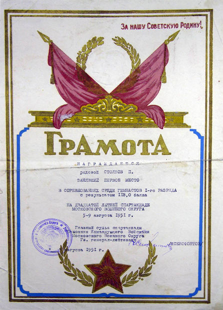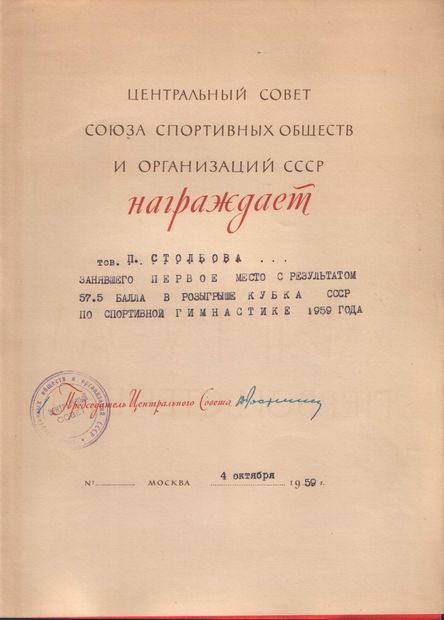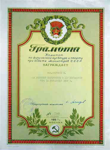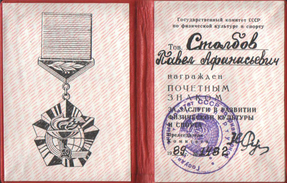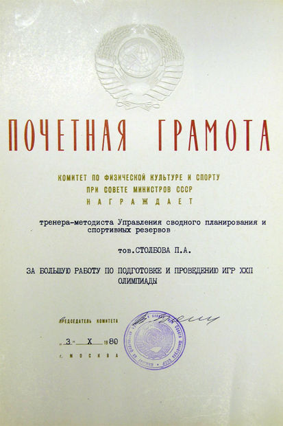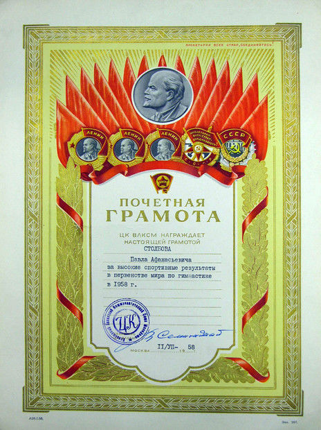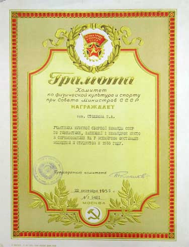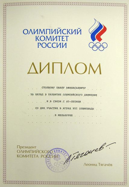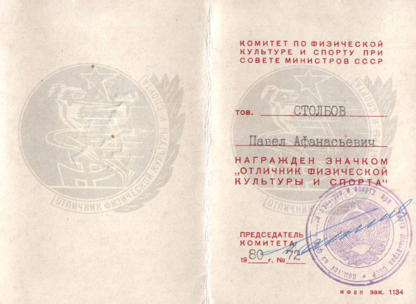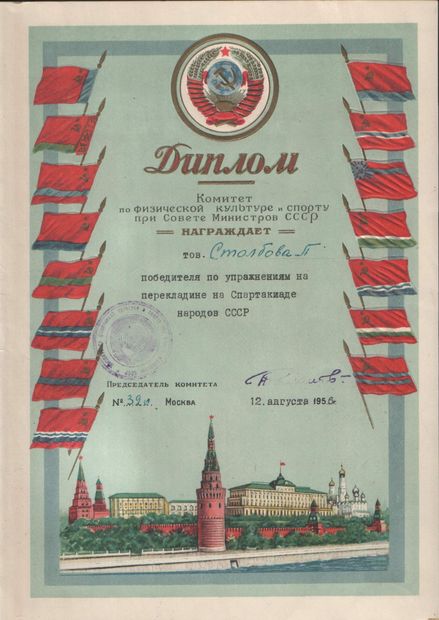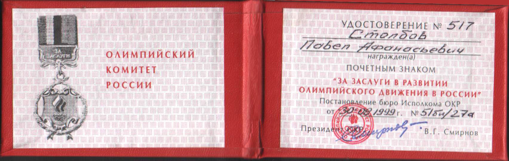 Право размещения цифровых изображений наград и документов предоставлено Современному музею спорта Столбовым П. А.