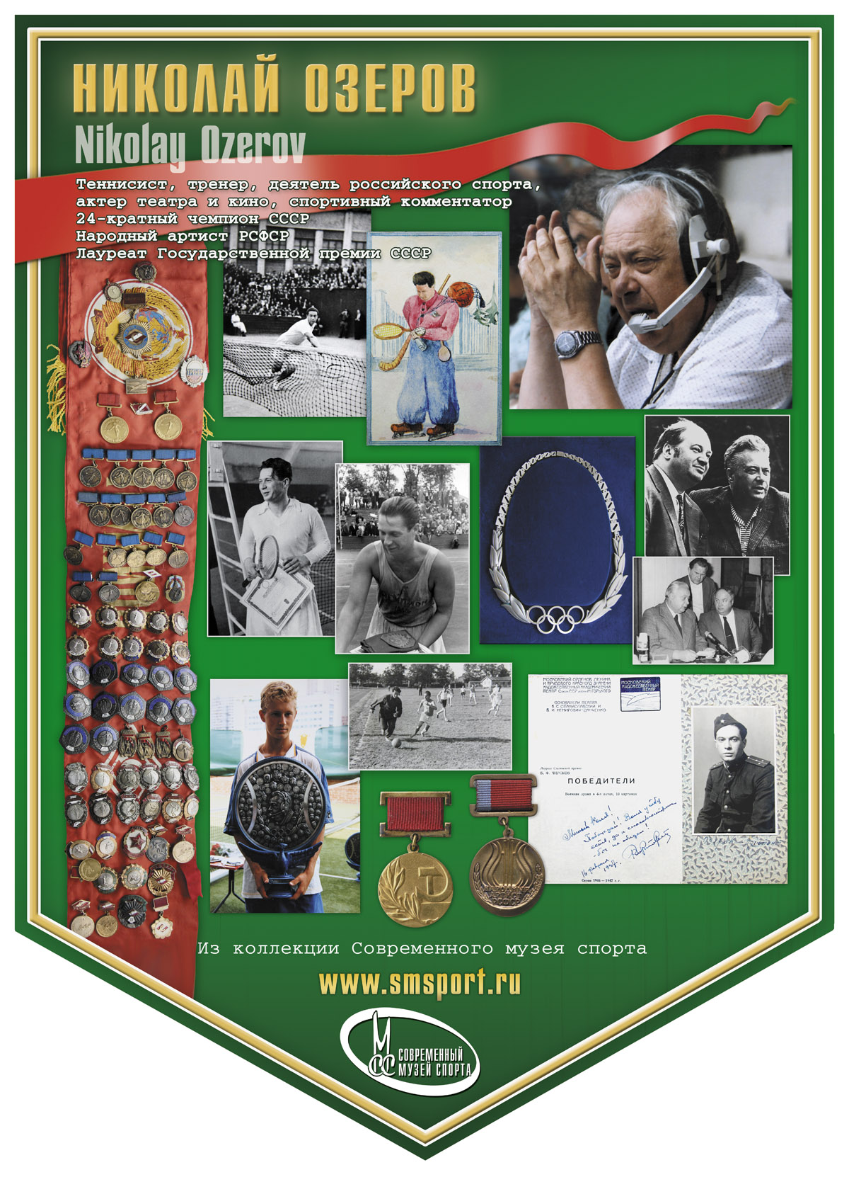 Теннисист, тренер, деятель российского спорта, актер театра и кино, спортивный комментатор. Выпускник Государственного института театрального искусства им. А. Луначарского. Один из сильнейших теннисистов СССР 40-х – 50-х годов прошлого столетия. Заслуженный мастер спорта СССР, заслуженный тренер России, председатель Федерации тенниса города Москвы (1960-68), председатель Центрального и Российского советов Международного спортивного общества «Спартак» (1992-96), президент Международного физкультурно-спортивного общества «Спартак» им. Н. Старостина (1996-97). Актер МХАТ (1945-59), спортивный комментатор Гостелерадио СССР (1950-88). Художественный руководитель радиостудии «Николай Озеров» (с 1992). Народный артист РСФСР, кавалер Олимпийского ордена (1992), лауреат Государственной премии СССР (1982), премии Союза журналистов СССР (1980), национальной телевизионной премии «ТЭФИ» (1997) в номинации «За личный вклад в развитие ТВ».