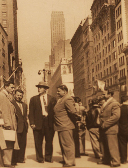Встреча с Георгом Гаккеншмидтом (в центре), чемпионом России 1898 года по тяжёлой атлетике, чемпионом Европы и мира по борьбе, личным тренером английского королевского дома. Нью-Йорк. 1958 год. (Комментарий Воробьёва А.Н.)