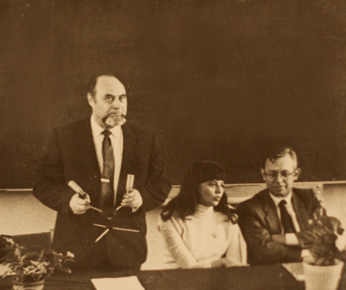 Генеральный секретарь AISEP профессор М. Риерон (справа) после доклада в МОГИФКе. Посёлок Малаховка, 1986 год. (Комментарий Воробьёва А.Н.)