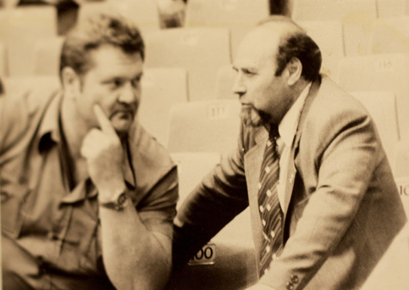С Леонидом Жаботинским. После трудных спортивных баталий. 1980 год. (Комментарий Воробьёва А.Н.)