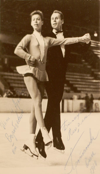 Фотография прославленных советских фигуристов Людмилы Белоусовой и Олега Протопопова с их автографами для Аркадия и Эльвины Воробьёвых. 1964 год