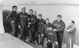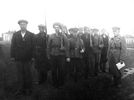 Первая поездка за границу в Венгрию на дружеские матчи. 1950 год. Слева направо, первый ряд: К. Назаров, В. Светилко, руководитель делегации Л. Свиридов, Я. Куценко, Е. Лопатин. Второй ряд: дядя Саша Бухаров, Ю. Губанов, венгр-переводчик. Третий ряд: И. Удодов, А. Воробьёв, венгр и А. Медведев. (Комментарий Воробьёва А.Н.)